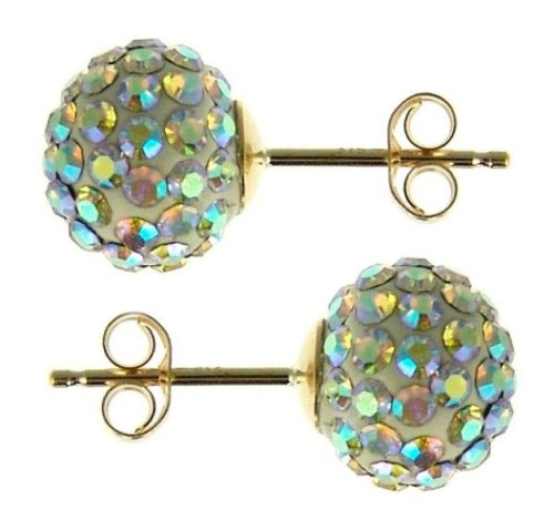 9ct Yellow Gold 8mm Ladies' Rainbow AB Crystal Ball Stud Earrings