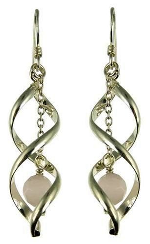 Ladies' Silver Open Twisted Drop Earrings with Hanging Pink Quartz Stone