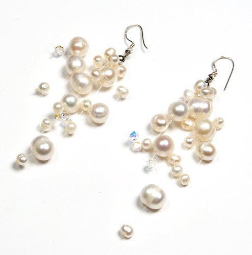 Oi! - Ladies' White Freshwater Pearl and Crystal Earrings - E0086