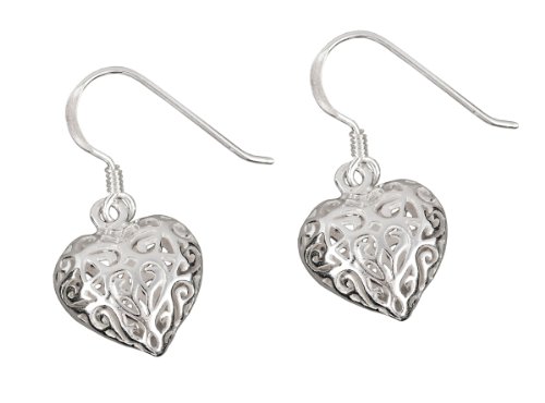 Silver Ladies' Filigree Open Heart Hook Wire Earrings