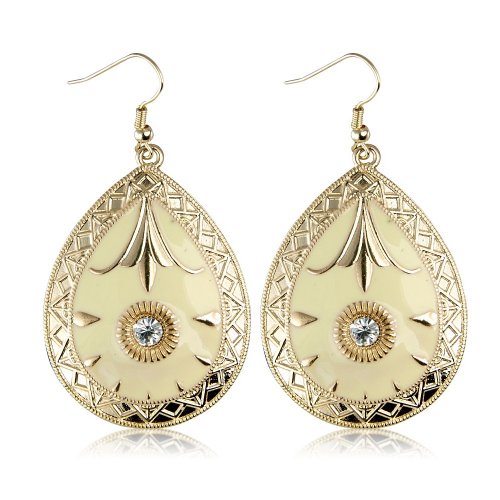 Stunning yellow earrings, in a tear drop with vintage inspired detail of a 4.5 cms drop earring. A great price at only £5.99 which includes a lovely gift bag to complete your purchase. Please do not forget if you spend £10 you'll get Free Delivery, if not delivery is only 95 pence. Check out our full fashion jewellery range for women and children at Chic Fashion Jewellery. All products are 100% nickle and lead free to comply and exceed UK legal requirements, so you can be confident and safe with your new purchase.