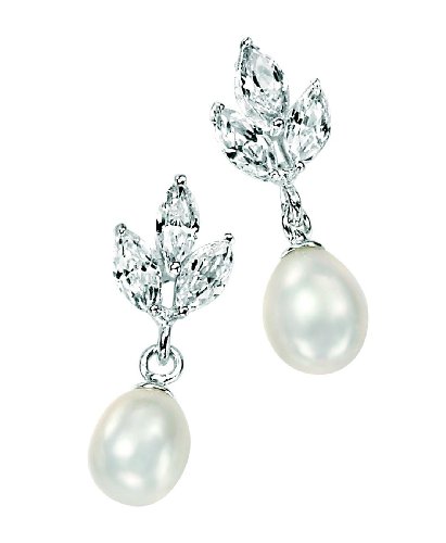 Element Sterling Silver, Ladies', E3661W, Pearl Earrings with Triple Marquise CZ