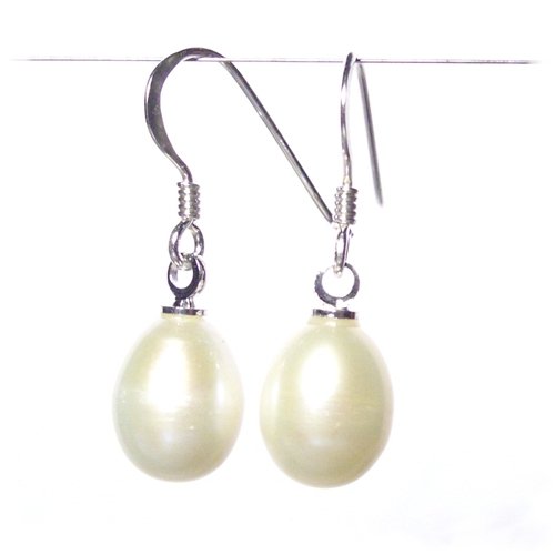 Beautiful jewellery for very special people. Pearl drop earrings.Made with large white fresh water pearls.On Sterling silver fish hooks stamped 925.The earrings measure 2.8cm long x 0.8cm wide.Gift box.