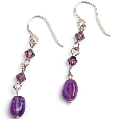 Oi! Ladies' E4076 Purple Crystal and Amethyst Drop Earrings