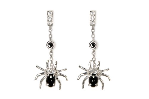 Silver Black & White Cubic Zirconia Spider Drop Earrings