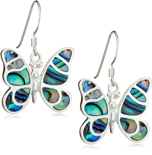 Silver Pave Shell Butterfly Drop Earrings