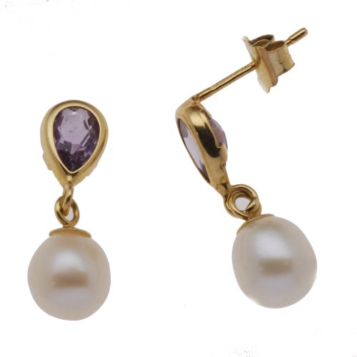 9ct Yellow Gold Cultured Pearl And Amethyst Earrings