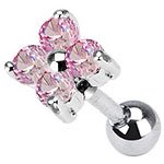 Pink Flower Crystal Quad 316L Surgical Steel Cartilage Piercing, upper Ear or Tragus earring bar / Stud Ball Size: 5mm Bar Size: 1/4" or 6mm Bar Thickness: 16GA or 1.2mm 316L Surgical Steel