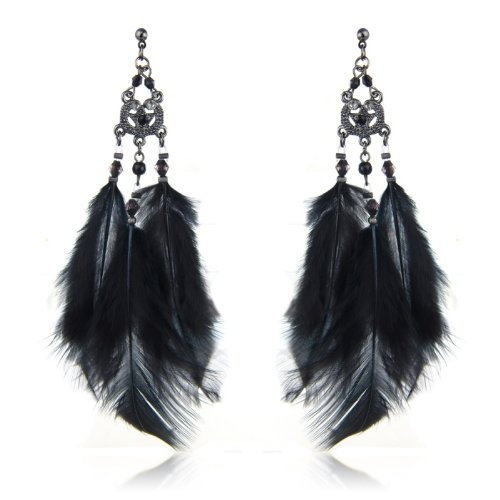 Black feather earrings, gorgeous statement earrings for the fashion savvy! The full length of the earring is approx 12cm's, the length of the feathers are approx 8cm's arrives in gorgeous gift bag, the perfect prezzie for a friend or yourself :) A great price at only £8.99. Check out our full fashion jewellery range for women and children at Chic Fashion Jewellery. All products are 100% nickle and lead free to comply and exceed UK legal requirements, so you can be confident and safe with your new purchase.