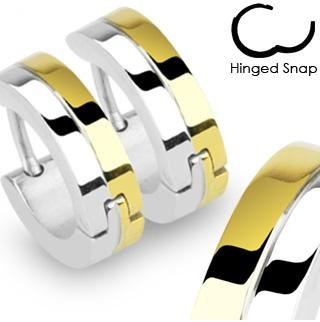 Pair of Two-Tone Small Huggie Hoop Earrings (Diameter: 14mm. Width: appx 4mm) Stainless Steel (will not tarnish/fade) Supplied in Gift Pouch