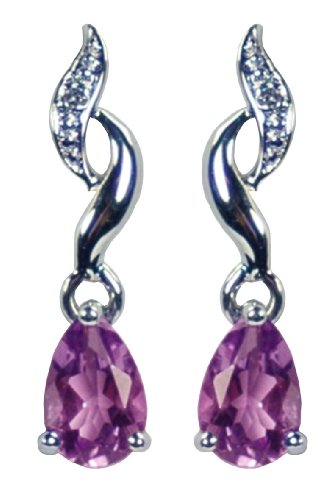 0.0066 Carat Diamond with Amethyst Earrings in 9ct White Gold