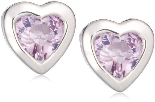 Jo For Girls Silver Heart Purple Cubic Zirconia Stud Earrings