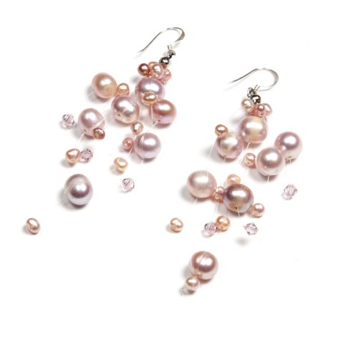 Oi! - Ladies' Pink Freshwater Pearl and Crystal Earrings - E0088