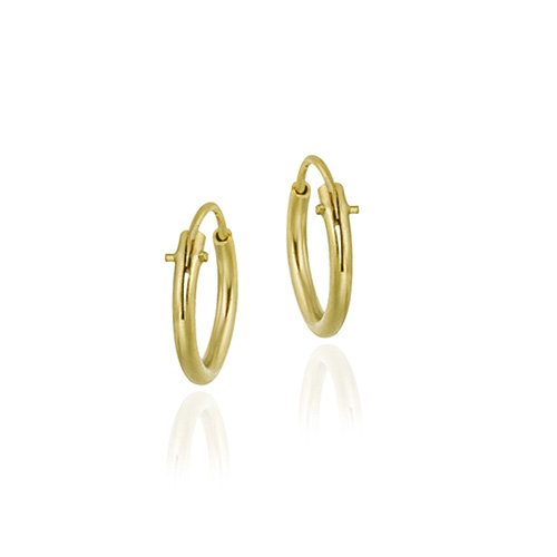 18K Gold over Sterling Silver 10mm Tiny Polished Hoop Earrings