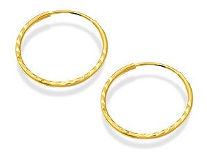 Diamond-cut patterning on one side for these 12mm hoops - perfect for newly-pierced ears. Made in the UK.