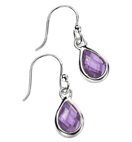 Elements Sterling Silver E3372M Ladies' Faceted Teardrop Amethyst in Silver Teardrop Earrings