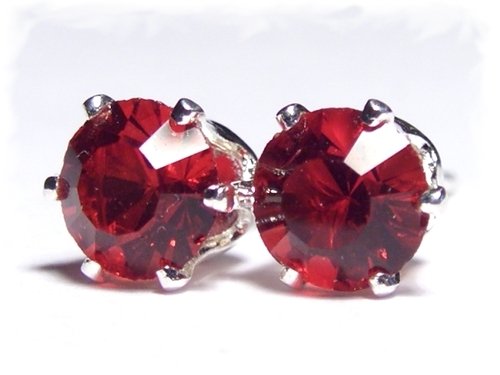 petite Silver Plated Stud Earrings set with siam red Swarovski Crystal elements. Gift Box. Beautiful jewellery for very special people.