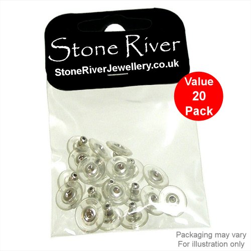 Stone River Jewellery Pack of 20 Earring Backs Hypo Allergenic Rhodium Plated