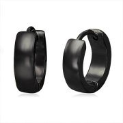 A pair of mens hoop earringsHinged, huggie designPolished black finishWidth at the front 4mm, length 12mmHinged design for better fitting & security in your earMade from high grade stainless steelThis won't mark your skin or tarnish like other metals
